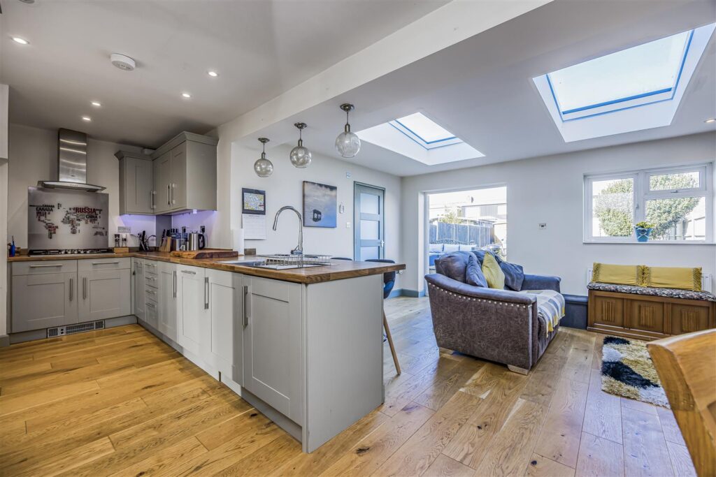 At the heart of the home is the extended kitchen/diner — a fantastic space for those who love to cook while socialising. This area creates a natural hub for family life and entertaining, combining practicality with a warm, sociable atmosphere.